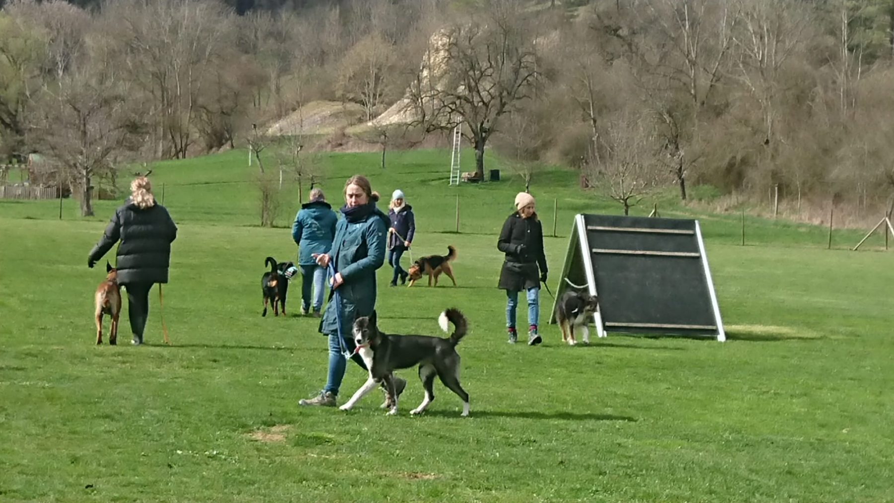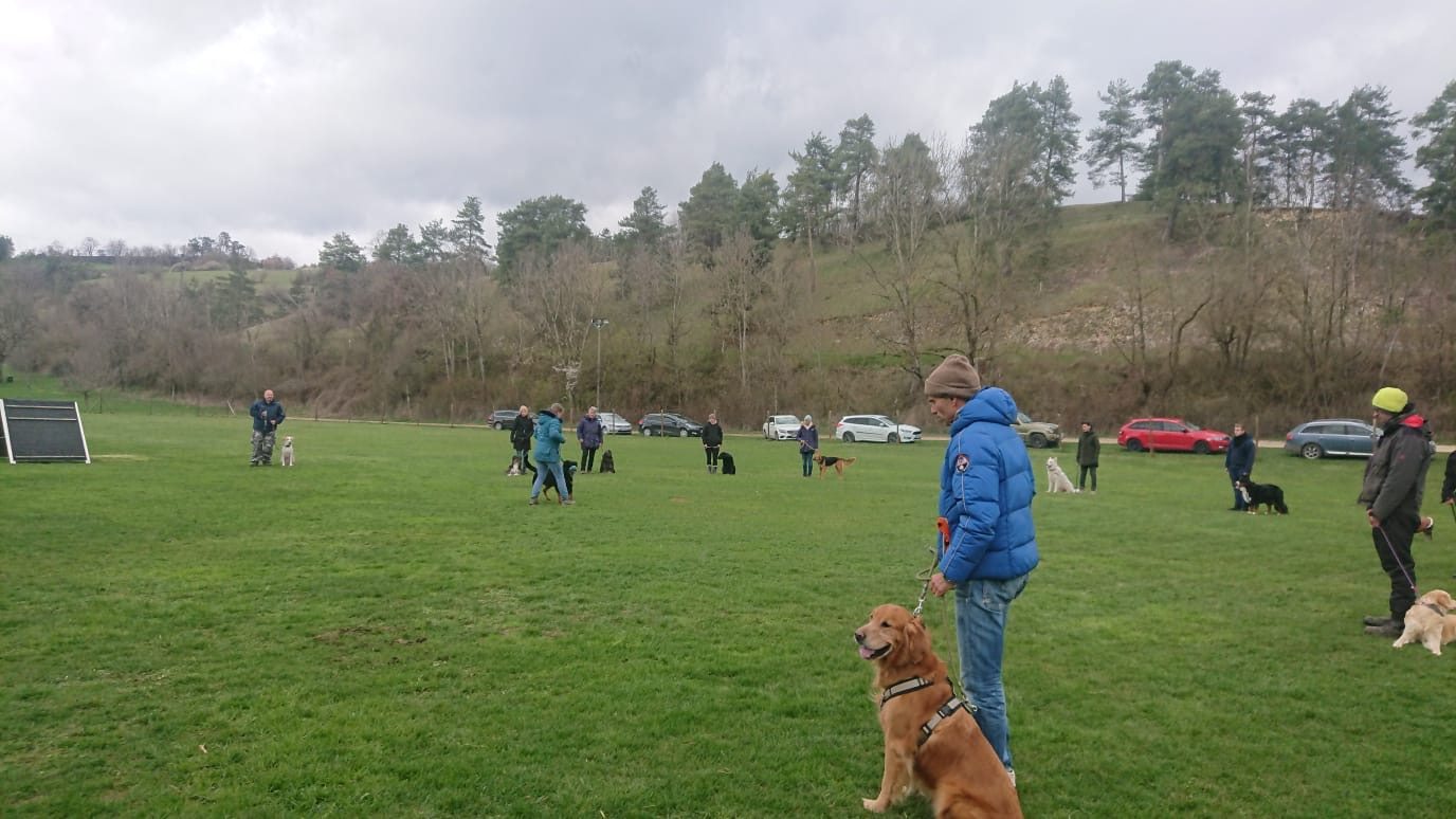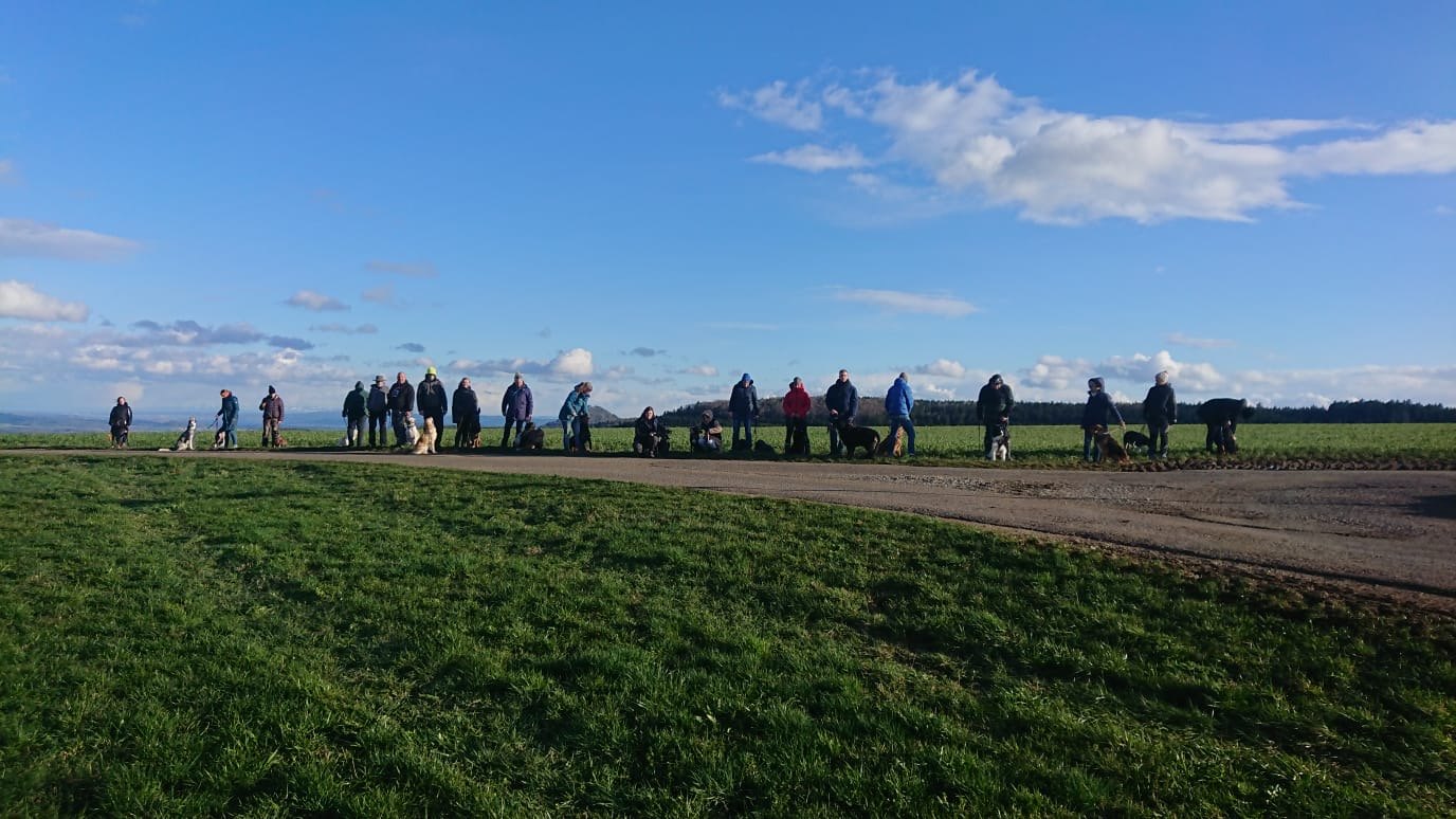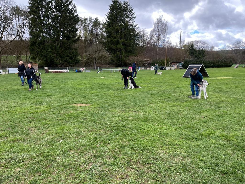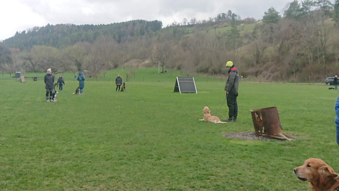 Schön ist zu sehen das ältere, kleine, große und auch junge Hunde gemeinsam ohne Probleme trainieren können, wenn jeder eine Aufgabe zu meistern hat.