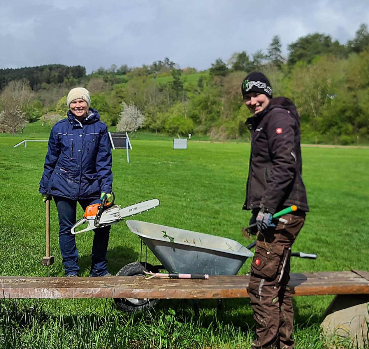 Die Oldies hatten wieder spaß am Training bei Sonnenschein. Auch unsere Zuschauerin wurde gleich ins Training integriert.
