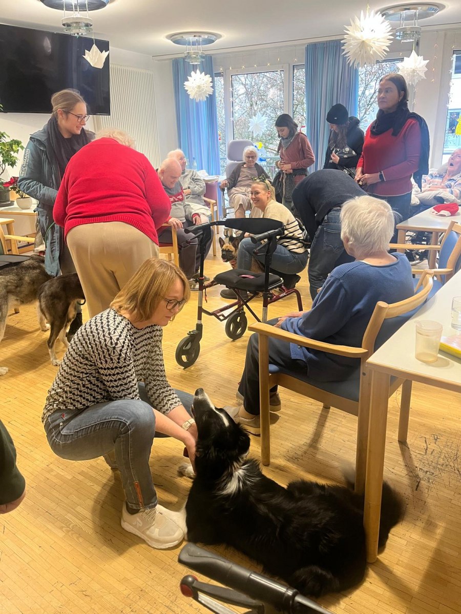 Am 06.12. besuchten einige unserer Mitglieder gemeinsam mit ihren Hunden das Seniorenheim in Engen. Für die Bewohnerinnen und Bewohner war es ein wunderbarer Moment, die Hunde zu streicheln, Zeit mit ihnen zu verbringen und die Freude zu spüren, die sie ausstrahlen.