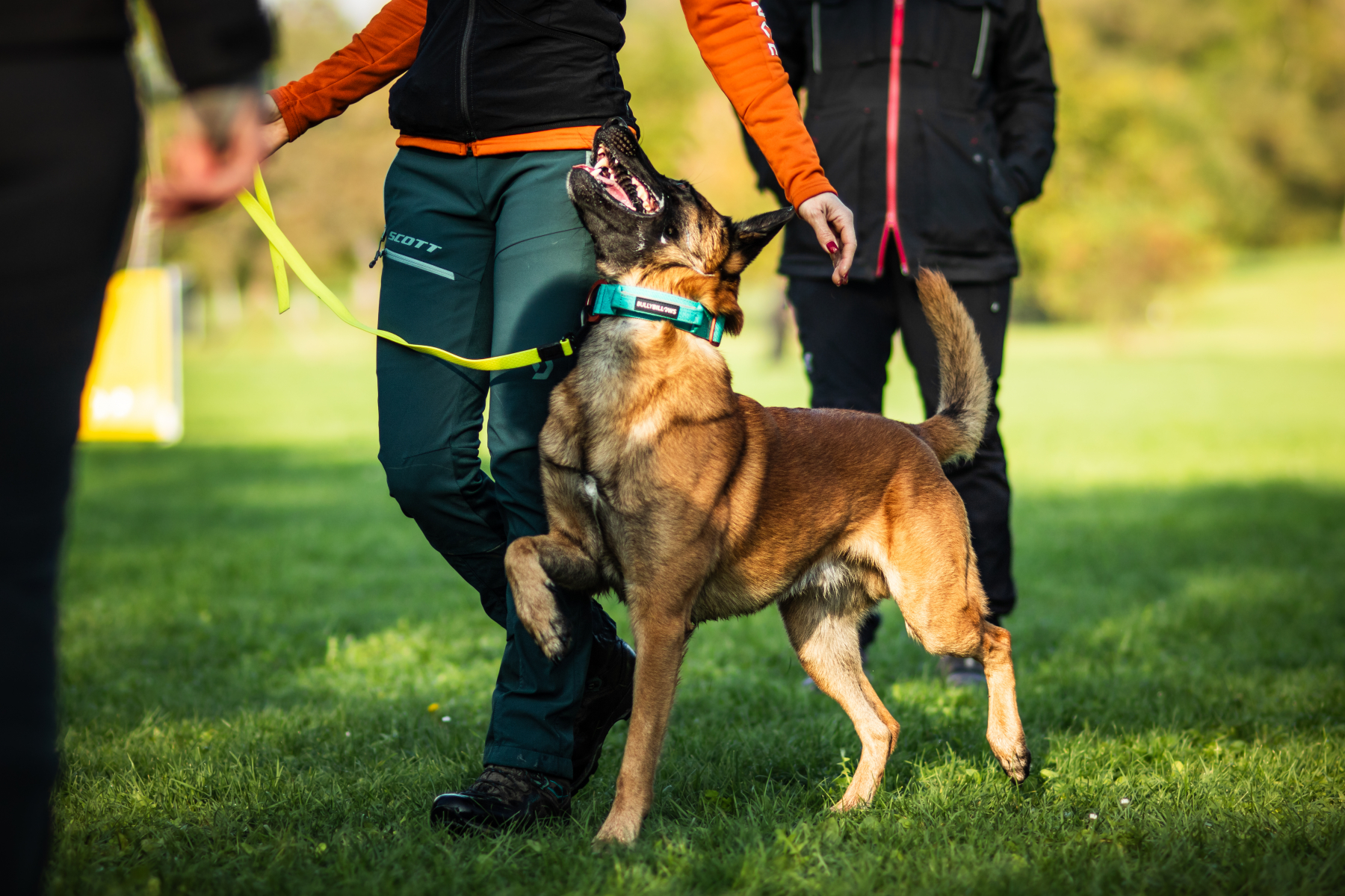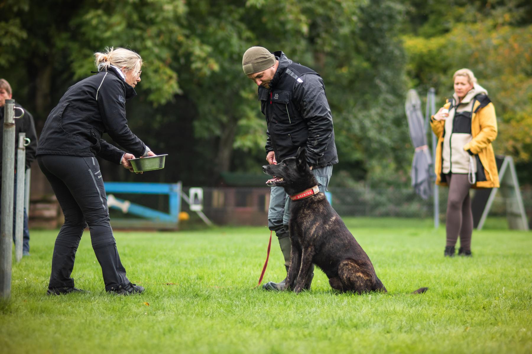 In verschiedenen Übungen wurde gemeinsam daran gearbeitet, dass die Hunde aushalten, wenn andere Teams an ihnen vorbeilaufen, ohne sich hierbei zuständig zu fühlen. Auch das Wegschicken anderer Hunde und das Ruhigbleiben in Bewegungssituationen standen auf dem Programm. Besonders spannend war die Übung, bei der die Hunde entspannt sitzen oder liegen bleiben mussten, während sich die Besitzer untereinander Bälle zuwarfen – gar nicht so einfach für manche.