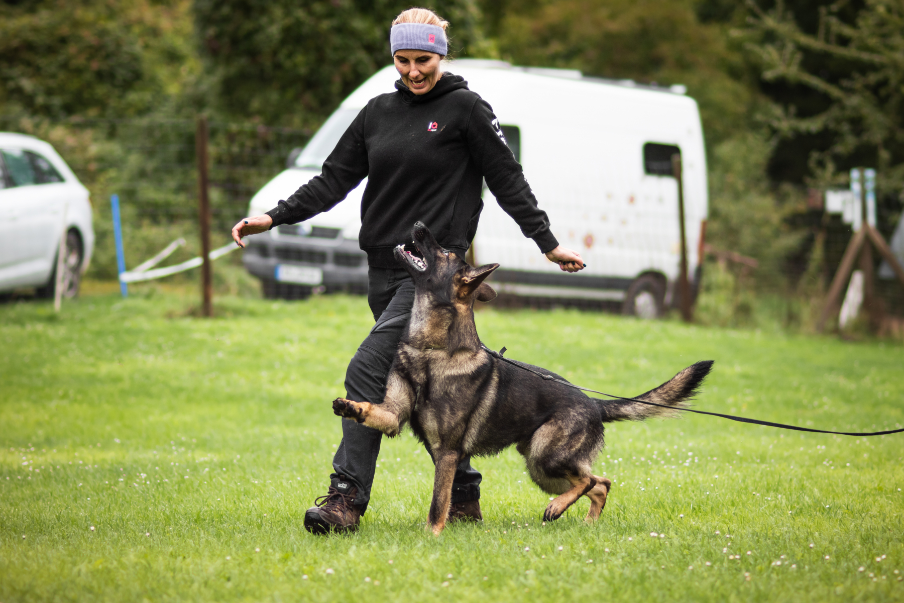 Der Samstag startete dank hochsommerlichen Temperaturen bereits um 6 Uhr mit der Fährtenarbeit. Alina und ihre Hündin Avani überzeugten mit ihrer Leistung und erzielten 97 Punkte.