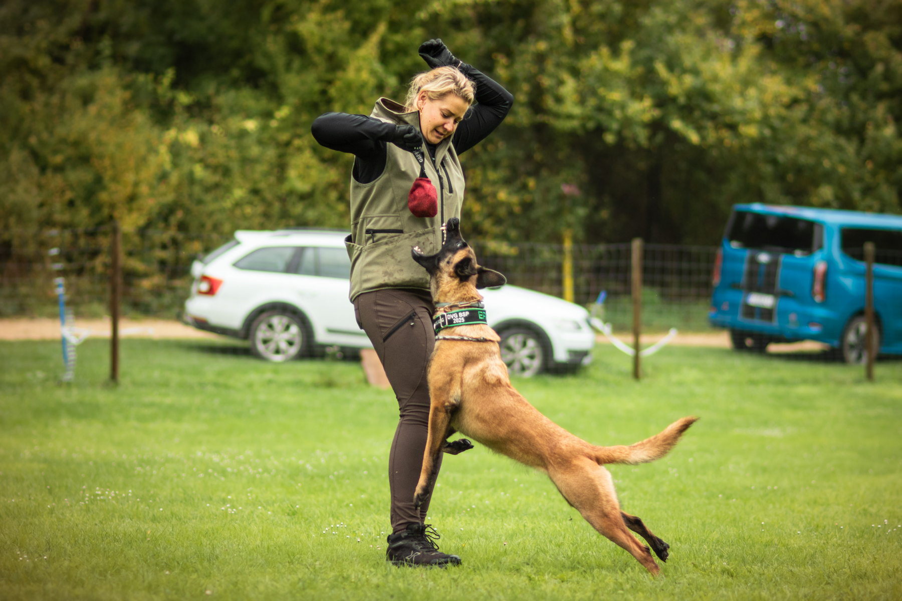 Am Sonntag ging es um 11:45 Uhr weiter mit der Unterordnung. Trotz der brütenden Hitze zeigten Alina und Avani eine harmonische und konzentrierte Leistung, die mit 93 Punkten belohnt wurde. Nach einer kurzen Pause stand um 14 Uhr noch der Schutzdienst an, der mit soliden 85 Punkten abgeschlossen wurde. Mit dieser Leistung sicherten sich Alina und Avani die Qualifikation für die DVG Landesmeisterschaft Ende Oktober.